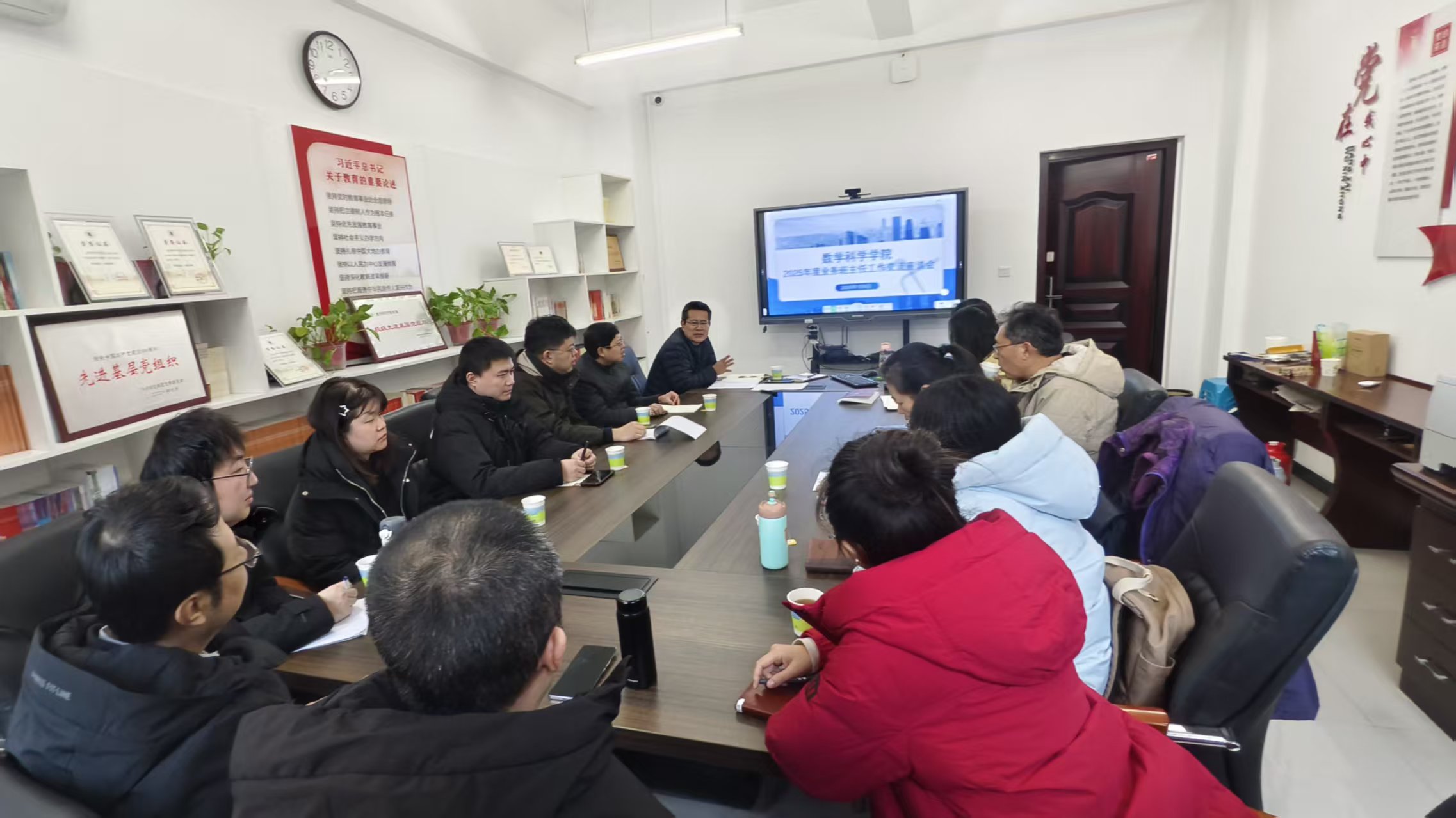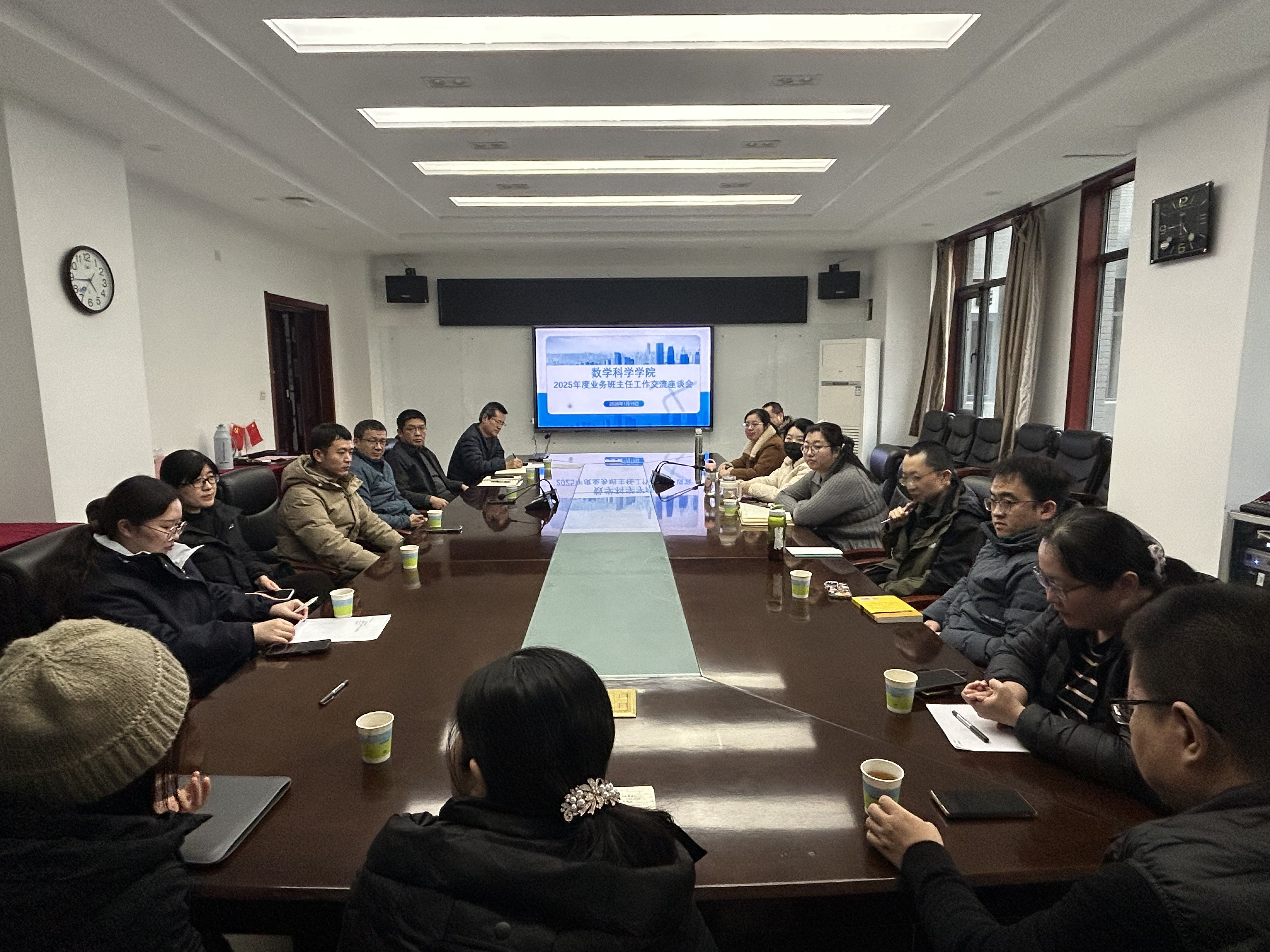 会上,党委副书记顾连忠结合2025年度学生工作整体情况,全面通报了学院在党团建设、学生学科竞赛、班级规范化管理、宿舍文化培育等方面取得的阶段性成果。各位业务班主任立足班级管理实践,围绕学生考研备考指导、就业方向规划、教师技能提升训练等工作,分享各自的经验做法与心得感悟。大家聚焦个别学生帮扶中的重点难点问题,与辅导员深入沟通探讨,精准对接帮扶需求,并结合实际工作提出了一系列针对性强、可操作的意见建议。