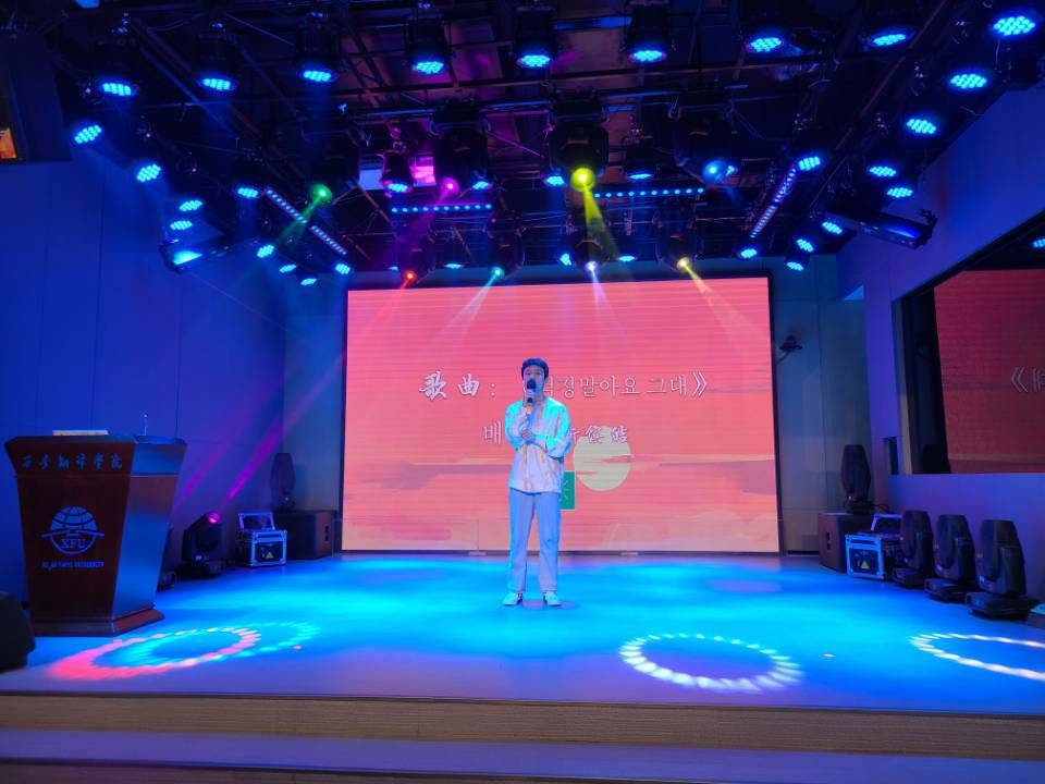 在K-POP歌曲比赛上,2019级与2020级同学们在舞台上的表现一个比一个出色,展示出了自己的特色和风格,每一首歌曲都是经过选手自己设计的,精彩的演出将现场气氛一次次推向高潮,台下掌声一次比一次热烈。