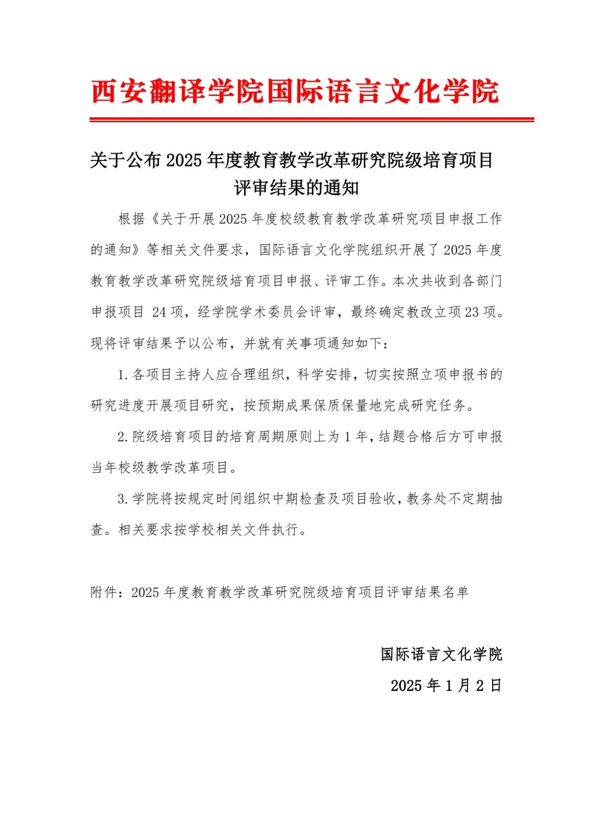 关于公布2025年院级教改培育项目获批名单的通知