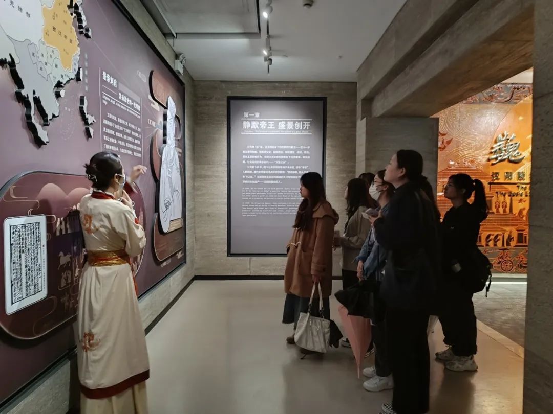 最后,在讲解员生动有趣的介绍中,同学们结束了本次意义非凡的认识实习活动,进行了合影留念。虽然活动是短暂的,但在每个人心中留下了深刻的印象。在本次活动中,同学们收获颇丰,学到了书本上不曾有的知识,身临其境地感受到汉文化的博大精深,更加了解到当时社会下的那段历史,感受到了“文景之治”时期百姓的安居乐业,为如此悠久的历史文化感到自豪。