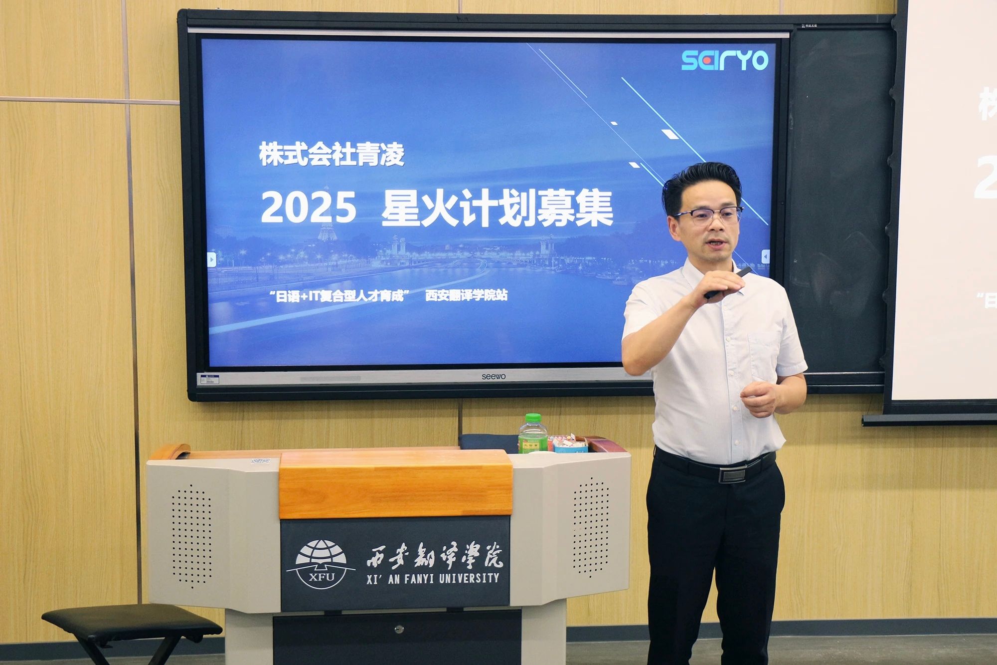 随后张晓光为大家讲解了其公司的主推的“星火计划”的独特优势:面向大三日语专业在校学生以线上实时授课形式,提供零成本、全日制、为期半年的IT技能培训。学员通过公司考核(笔试+面试,侧重日语沟通能力)后,将获得正式录用内定,毕业后即可赴日工作,此计划对文科生友好。