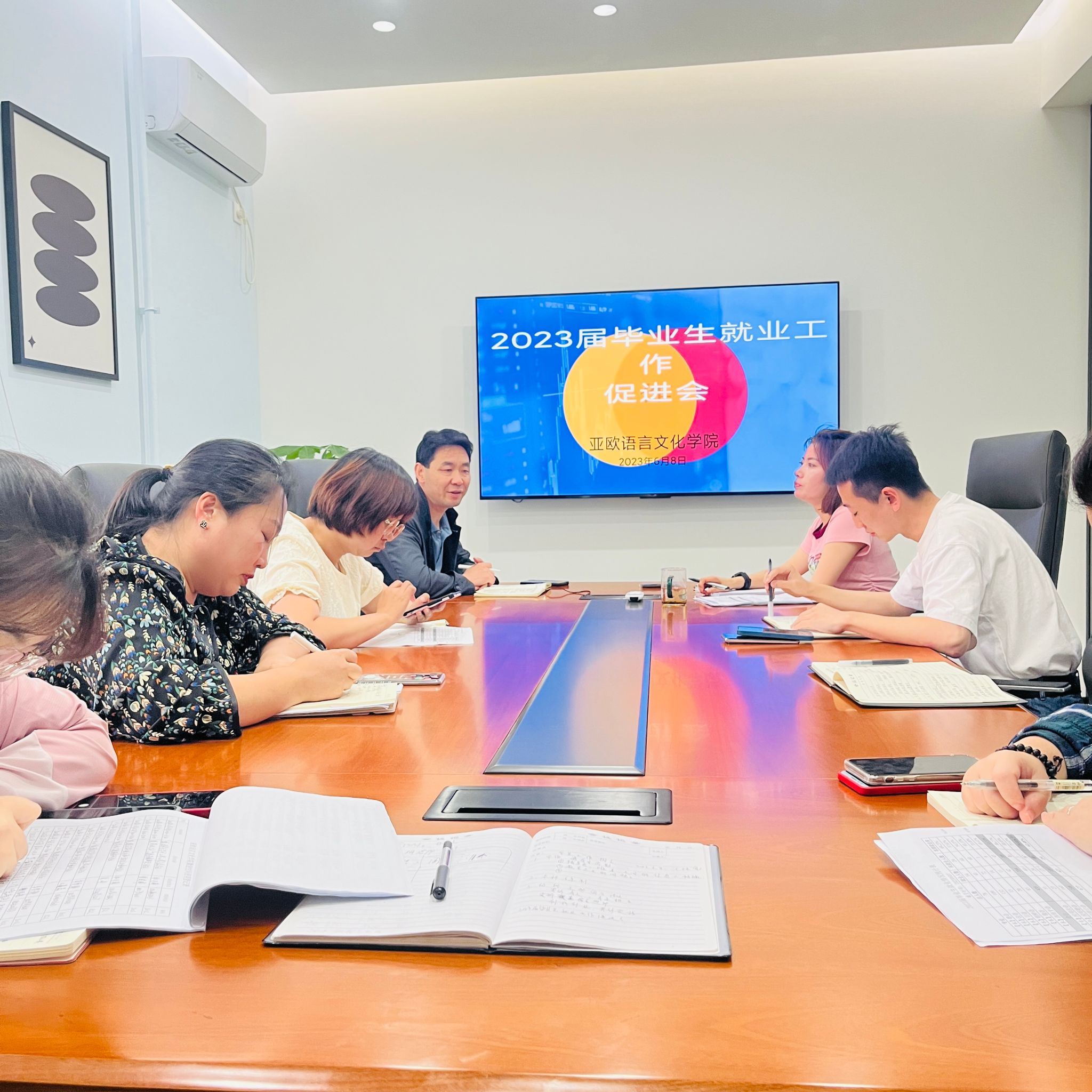 为加快2023届毕业生就业工作,6月8日,beat365平台唯一官网在三号楼创咖会议室召开2023届毕业生就业工作促进会,beat365平台唯一官网党委书记、副院长宇文永康,学工办主任尹娜,团总支书记陈福礼及全体辅导员参会。