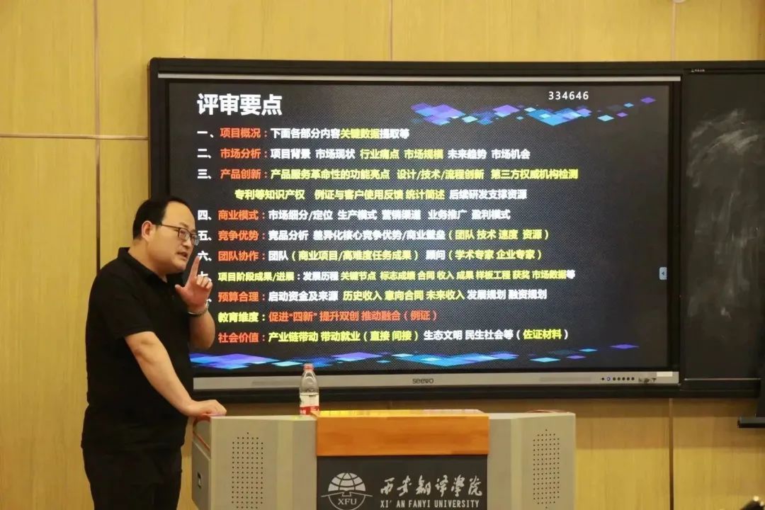 其次他讲到对“互联网+”大赛的认知和参赛所需的准备,也为我们指明了相应的参赛误区。同时张伟老师细致的讲解了“互联网+”大赛的评审要点以便于参赛者对立项与研究方向的确定。