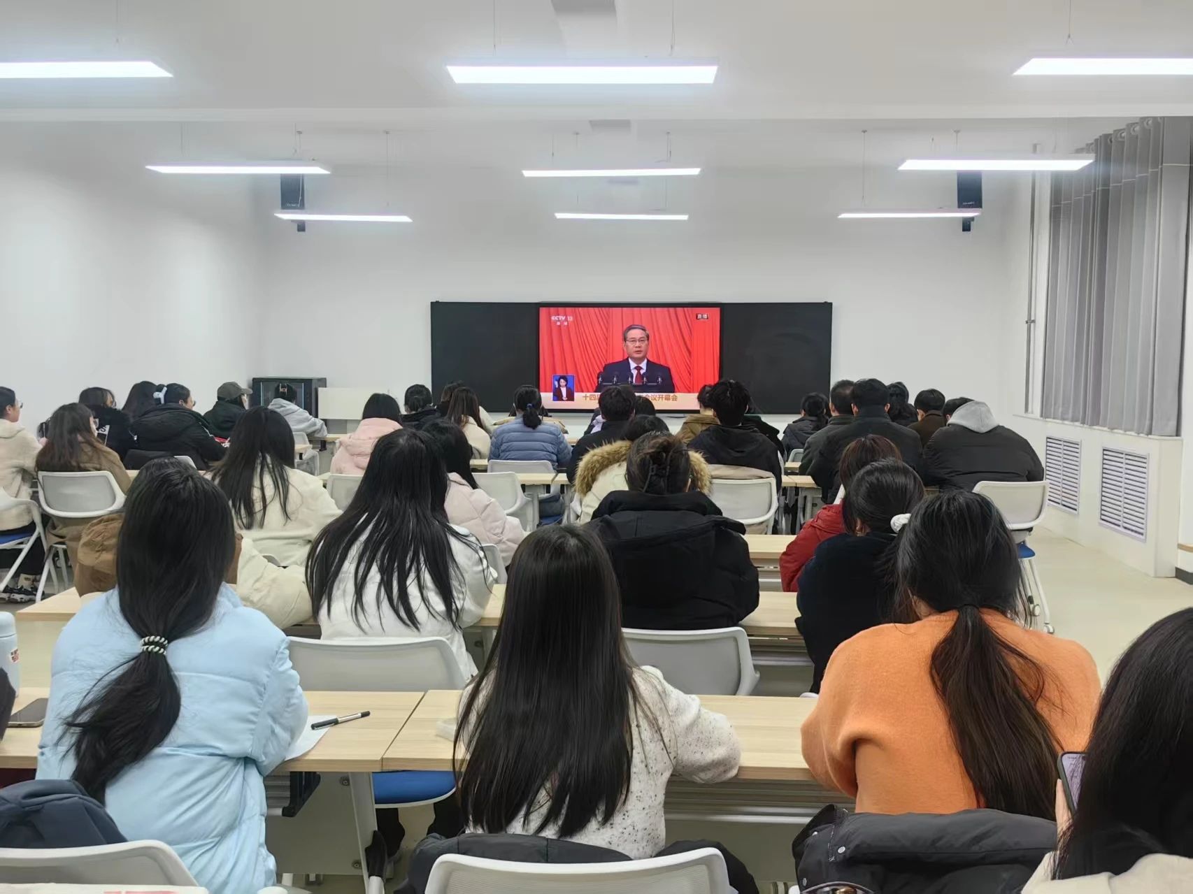 3月5日下午,beat365平台唯一官网党委组织师生党员在3119教室集中观看了全国两会开幕式,此次活动旨在深入学习贯彻全国两会精神,增强师生党员的政治意识和大局观念,进一步凝聚思想共识,激发奋斗动力。