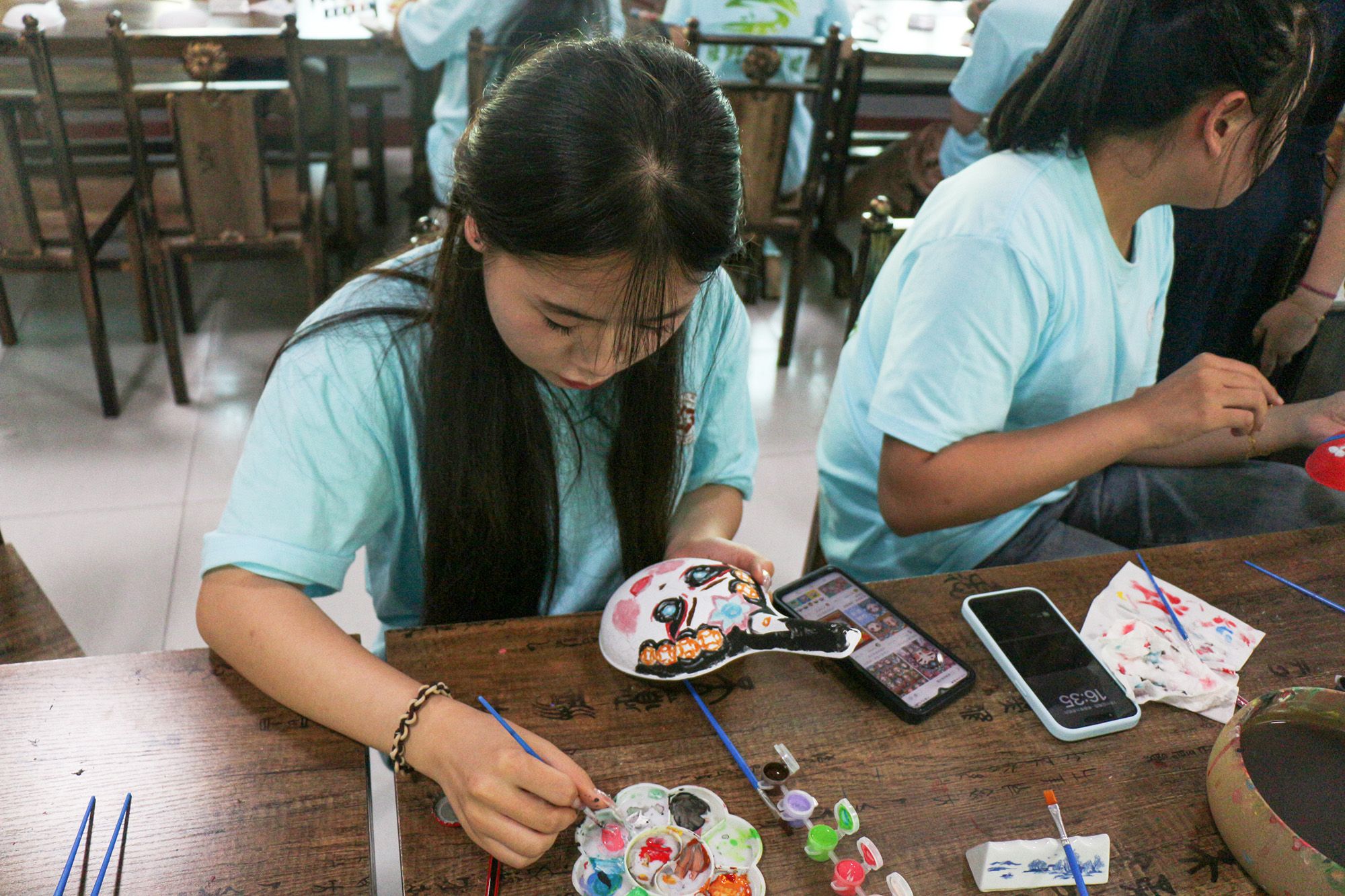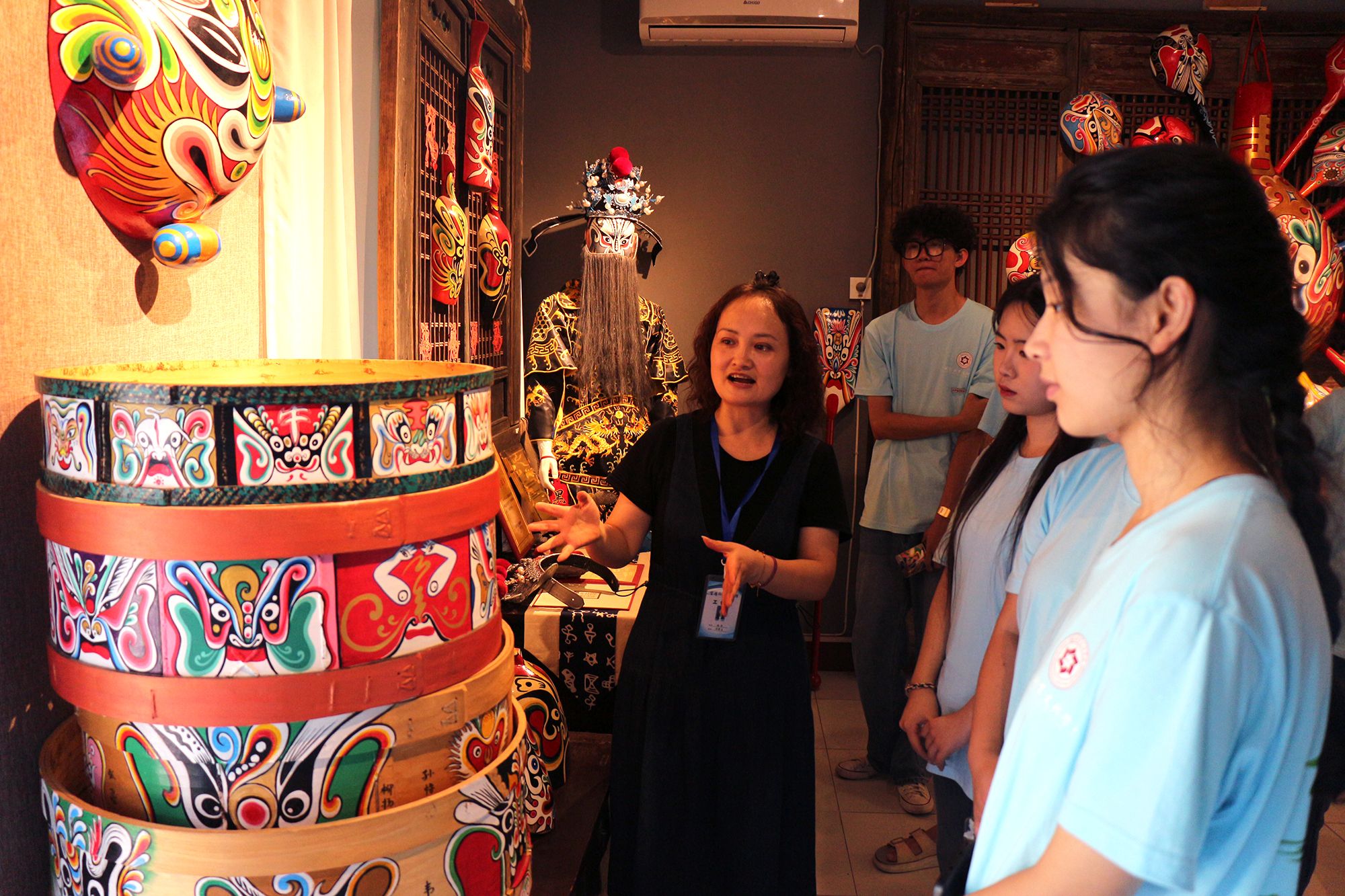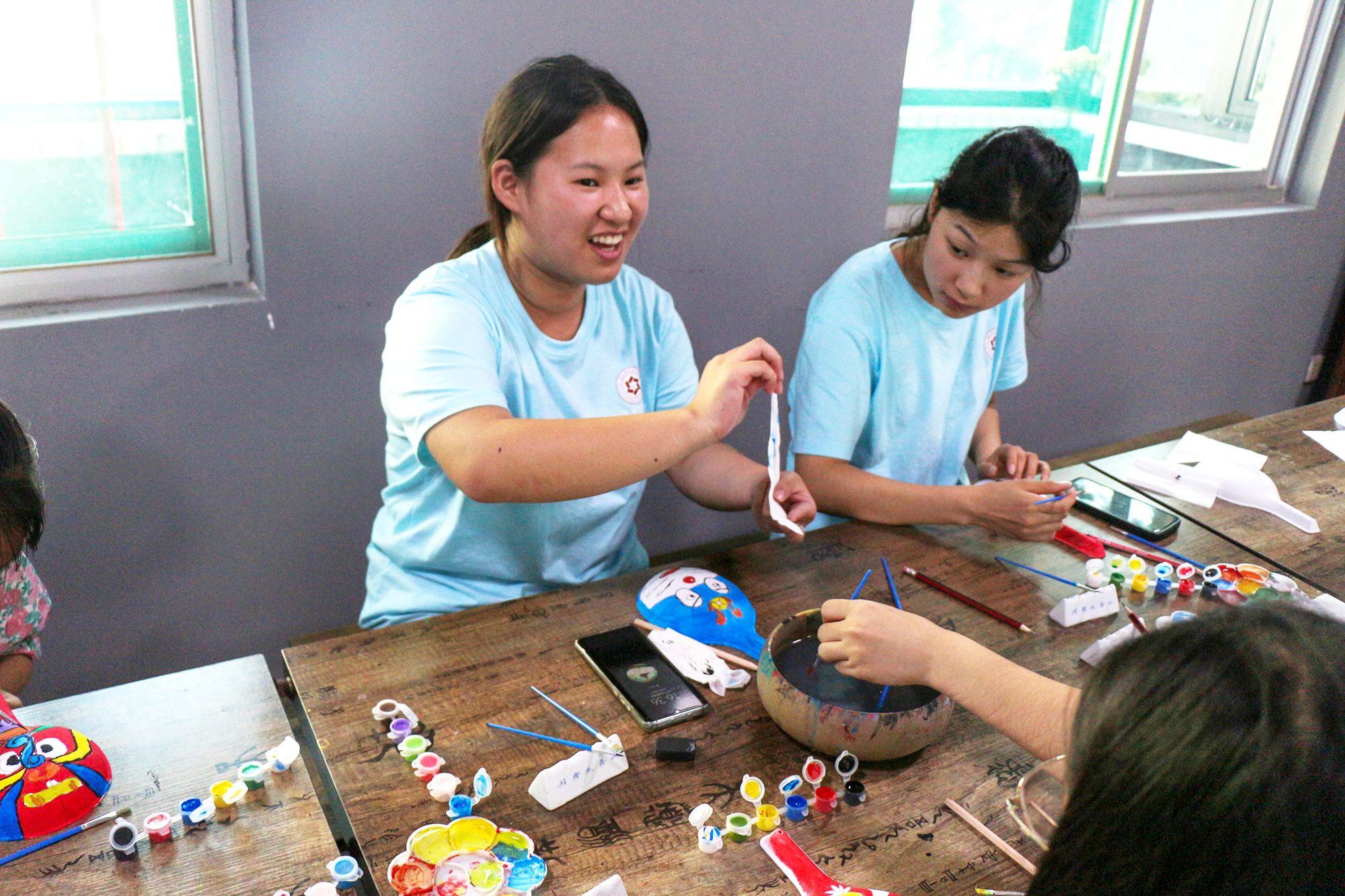 为了更加深入地感受民俗文化的魅力,志愿者们亲身体验了中国民俗文化的深厚魅力—画马勺脸谱。这项传统技艺由专业指导老师现场教学,志愿者们带着对传统文化的敬畏之心,用心描绘每一笔、每一划,将自己对美的理解和对传统文化的热爱融入其中。通过亲手创作,大家不仅对马勺脸谱的制作工艺有了更直观的认识,更在实践中体会到了传统文化传承与创新的不易和重要性。