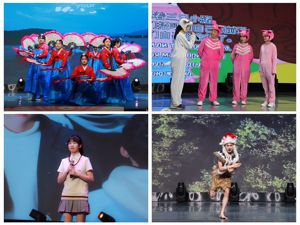 晚会在优美动听的《朝鲜语歌曲串烧》中拉开序幕。在西班牙语话剧《变色龙》中,表演者们台词娴熟、配合默契,情节扣人心弦,其精湛的演技将主人公奥楚蔑洛夫的经典形象展现得淋漓尽致,幽默诙谐的语言风格搭配精彩纷呈的舞台表现为观众带来了一场文化盛宴。诵读者们用法语朗诵文章《自由》,其吐字清晰、发音标准,字里行间充分展现了逐梦者向往远方与自由的决心,曲调间歌颂了少年们敢于逐梦的奋斗精神。非洲舞《pas comme ca》将现场气氛推向高潮,其新颖独特的舞步编排搭配律动鲜明的节奏,迸发出无限活力,表现出当代大学生努力拼搏、勇于创新的精神。