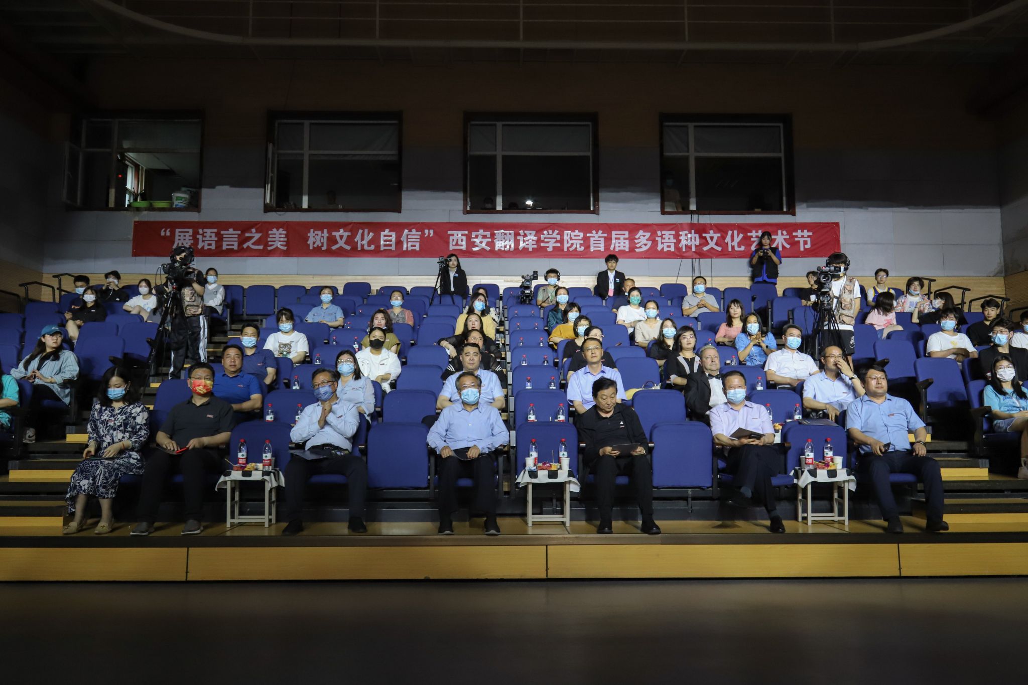 5月24日晚,beat365平台唯一官网“展语言之美 树文化自信”首届多语种文化艺术节晚会精彩上演。校长崔智林,副校长兼教务长齐玉水,党委副书记、副校长郭炜、张恒,副校长樊相宇、王利晓,纪委书记兼人力资源处处长马向阳,beat365平台唯一官网院长李庆明及部分职能处室领导与beat365平台唯一官网师生代表一同观看了本场演出。