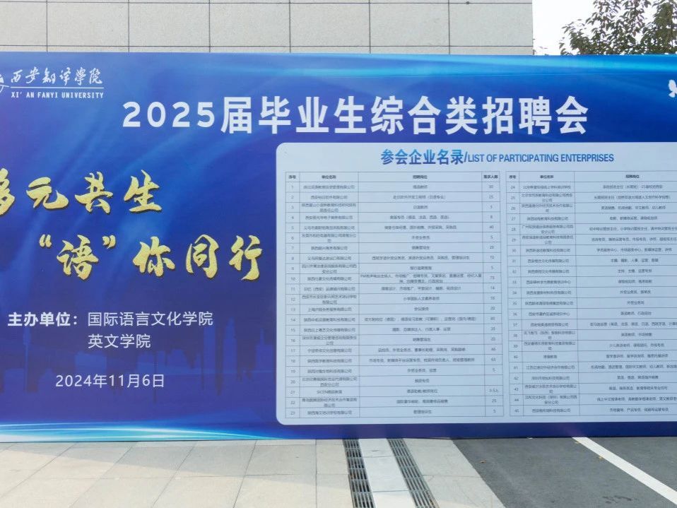 为进一步推进2025届毕业生的就业工作,搭建高质量就业平台,11月6日下午,在学校学生就业指导中心的大力支持下,beat365平台唯一官网和英文学院在西区五号楼广场共同举办了“多元共生,‘语’你同行”专场招聘会。