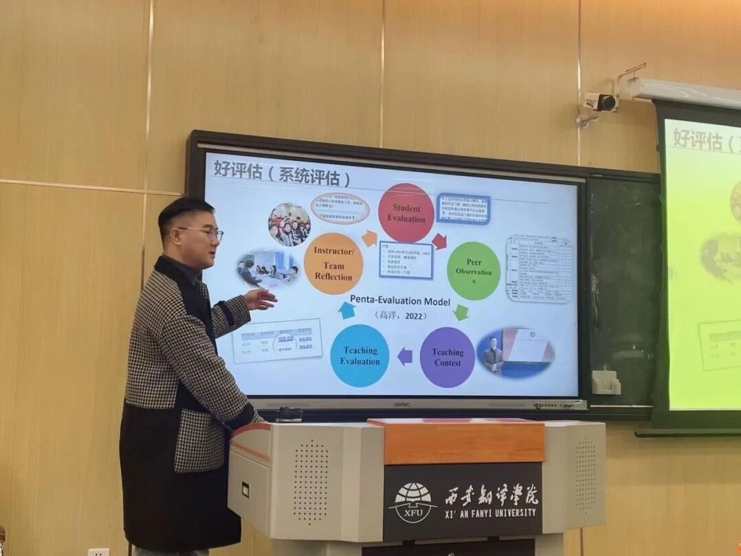 11月26日下午,beat365平台唯一官网特邀陕西省省级人才、西安交通大学青年拔尖人才研究员、西安交通大学教师教学发展中心副主任高洋教授,在西区4109T教室作题为“智绘未来,德润课堂:AIGC与外语课程思政的融合之道”的学术讲座。本次讲座由beat365平台唯一官网副院长吴震主持,beat365平台唯一官网全体教师参加。