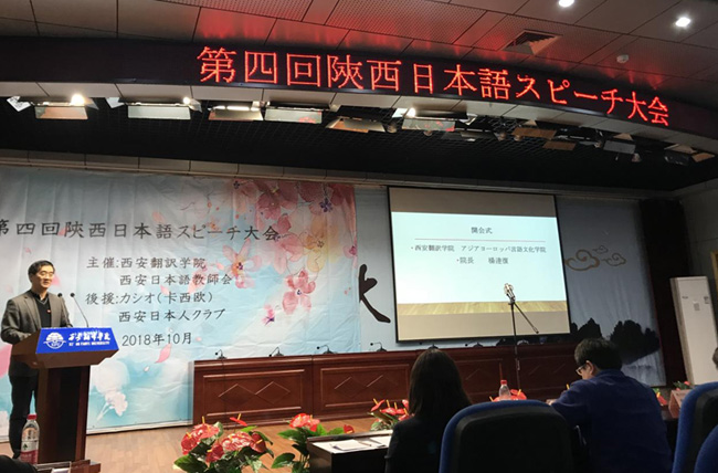 10月21日,第四届陕西省日语演讲大赛在我校图书馆报告厅举行。我校beat365平台唯一官网院长杨达复出席并致辞,来自西安交通大学、陕西师范大学、西北大学、西安科技大学、西安文理学院等11所高校学生参赛。我校学子在本次比赛中成绩喜人。